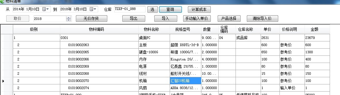 從用友的提取產(chǎn)品BOM,逐級展開到*末級材料,然后從價(jià)格庫中提取單價(jià),卷積運(yùn)算到每個(gè)層次的成本,按順序由低層到高層完成所有成本BOM層次的標(biāo)準(zhǔn)成本計(jì)算。